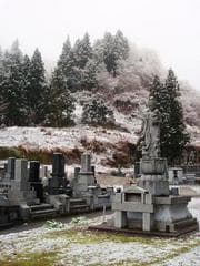 今朝の墓地・・・、朝方少し雪になったようでほんの少し雪化粧しています。