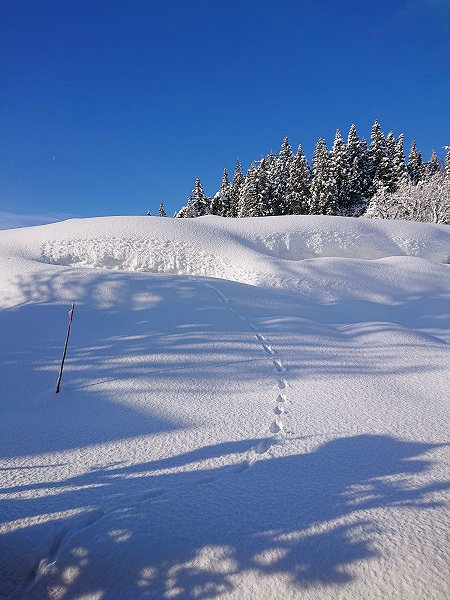 2026年2月12日 / 最終更新日時 : 2026年2月12日 kenjunjun 墓地積雪状況 墓地積雪状況 どこにお墓が・・・といった写真です。すっかり雪に埋まってしまっています。 これでも昨年の今頃よりは少ない積雪です。 この足跡はなんの動物でしょうか? 新雪あとに晴れるとこんなにも綺麗な雪景色です。花粉症の人には辛い季節ですが、これから春を迎えて、2mほどもある雪の上をかんじきやスノーシューなどで歩けるようになると、これまた楽しいのです!!! 水でも土でも風でも火でも雪でも、自然界は何でもそう・・・恵みと怖さと表裏一体ですね。 \ 最新情報をチェック / FacebookXBlueskyHatenaCopy