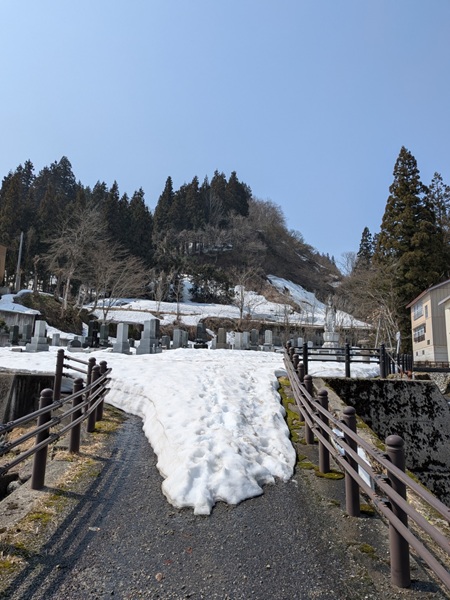 新年度がスタートし、昨日の南からの強風と雨で一気に雪が溶けましたが、千手院の墓地にはまだ雪が残っており、靴だとちょっと厳しいです。町中は無雪です。